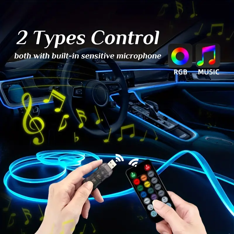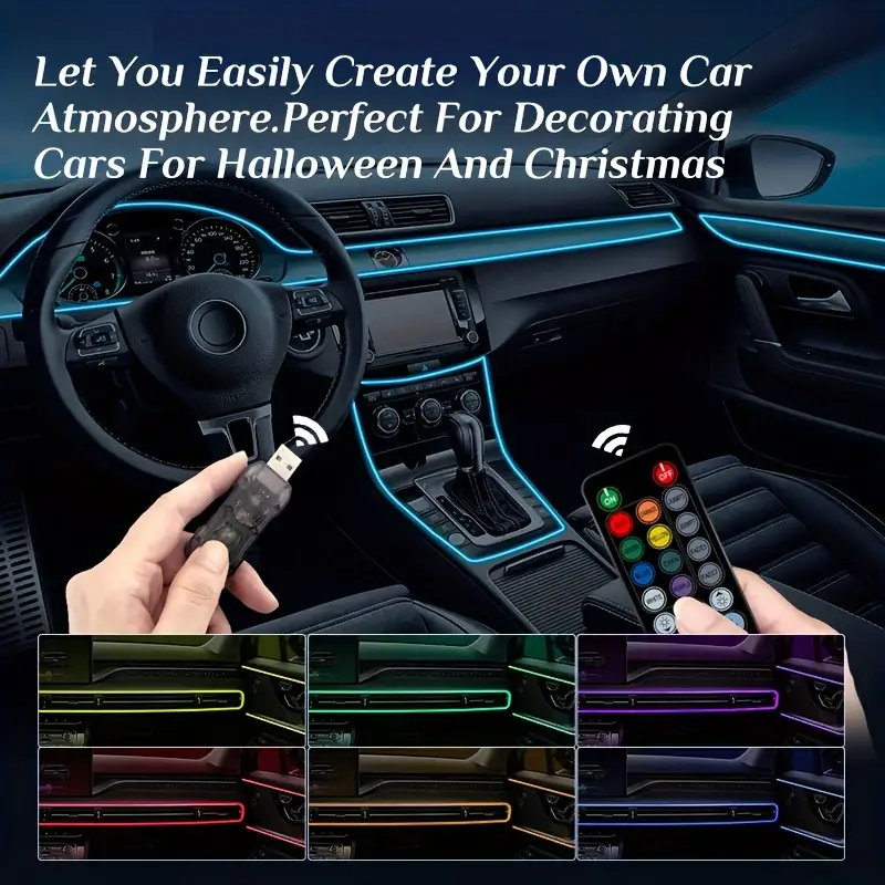 COD 5V USB Powered LED Car Dashboard Lights with Remote Control, Music Sync and Fiber Optic Interior Ambient Lighting